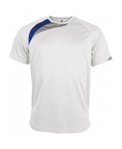 100% polyester. Quick drying fabric. Contrast panels. Matching coverstitch finishing. Twin needle finishing.