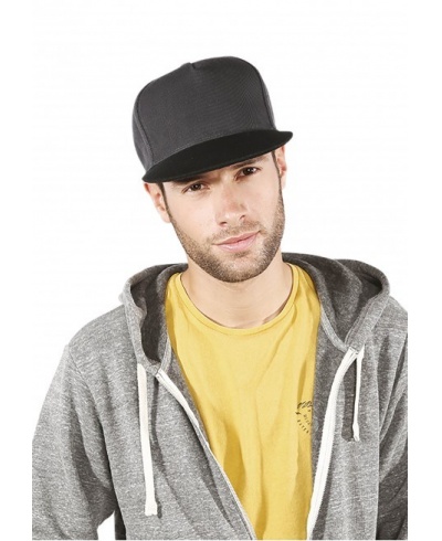 100% acrylic. 5 laminated panel snapback cap. Adjustable plastic closure.