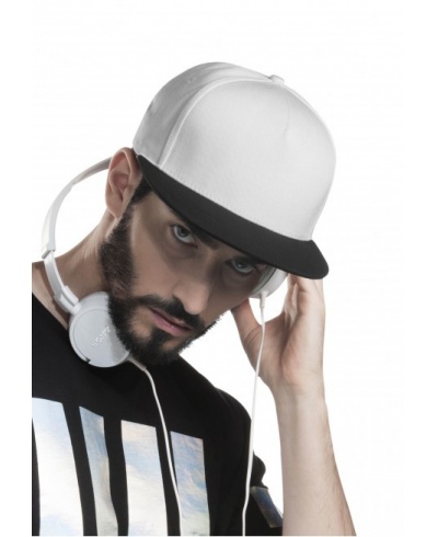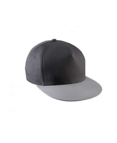 100% cotton twill. 5 panels. Flat peak. Adjustable plastic closure.