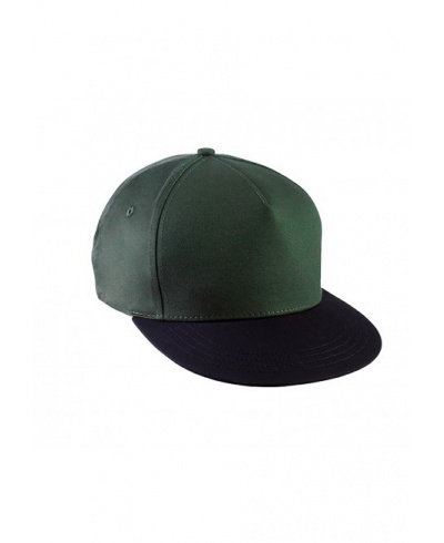 100% cotton twill. 5 panels. Flat peak. Adjustable plastic closure.