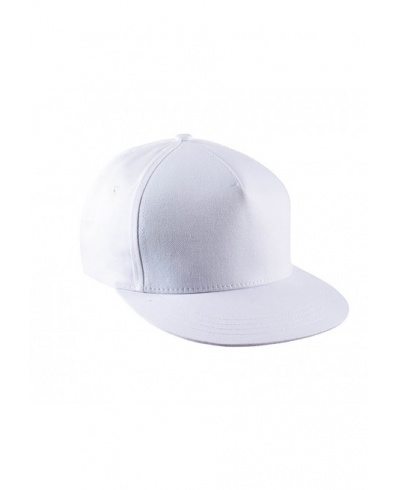 100% cotton twill. 5 panels. Flat peak. Adjustable plastic closure.
