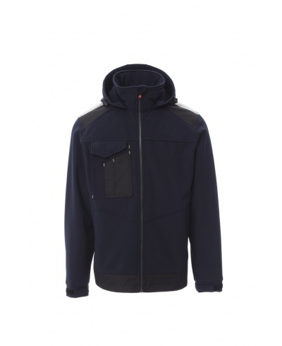 WP/MM 8000 MVP/GR 5000 Men's ergonomic jacket, fitted sleeve, full plastic SBS zip with "auto lock" metal pull, two zipped side pockets, one multipurpose breast pocket with concealed badge holder and LOCK SYSTEM concealed closing flap, 3M reflective stripes on the shoulders, elastic and Velcro fastening, removable and adjustable hood with elastic drawstring with stopper
