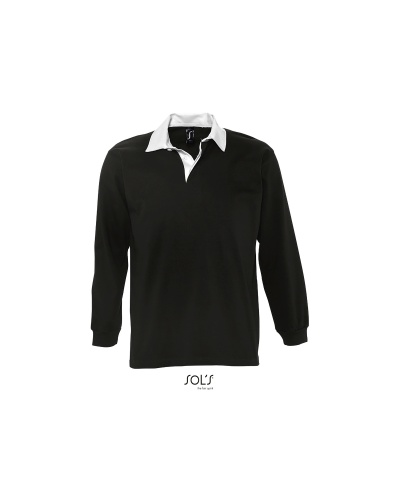 Elastane rib cuffs, Long sleeves, Collar and placket in white cotton twill, 2 white rubber buttons, Cut and sewn; Certificate: STANDARD 100 by OEKO-TEX®
