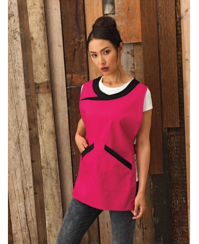 Premier long length Spa Tabard provides the style and glamour of our spa tunics with the practicality and ease of movement of our tabards. Side tabs with adjustable stud fastened closures. Black panel detail presents a striking yet elegant look whilst two handy pockets create a very versatile garment.