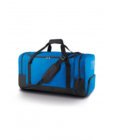 Sports/games bag in polyester 600D PVC backing. 2 side pockets and a shoe storage compartment, removable padded shoulder strap. Transparent label holder for easy identification. Large size model: 85 liters. SBS zips.