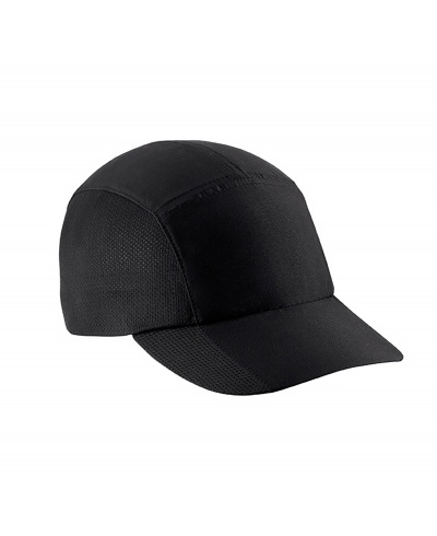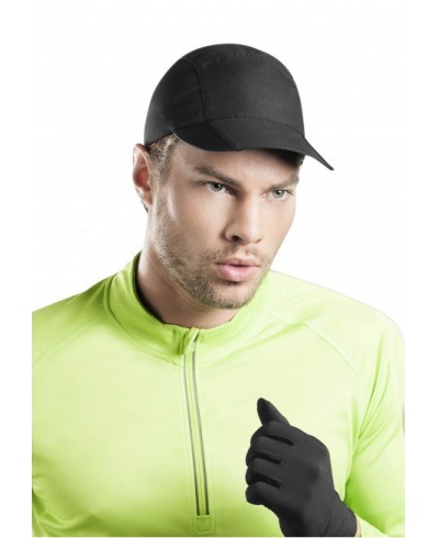 100% polyester microfibre. 3 panels. 100% polyester breathable mesh side panels. Size adjuster with tear release fastening.