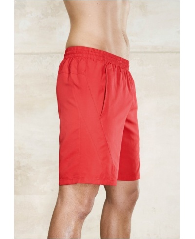 100 % Polyester. Quick drying fabric. Mesh lining. Elasticated waist with drawcord. Side panels. 2 side pockets.