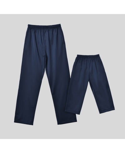 Straight cut trousers, two side pockets, elastic waist and adjustable drawstring.