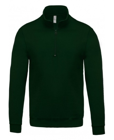 80 % cotton / 20 % polyester. Brushed fleece. Set-in sleeves. Tubular cut. Zipped and taped neck. Matching ribbed cuffs and hem.