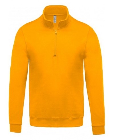 80 % cotton / 20 % polyester. Brushed fleece. Set-in sleeves. Tubular cut. Zipped and taped neck. Matching ribbed cuffs and hem.