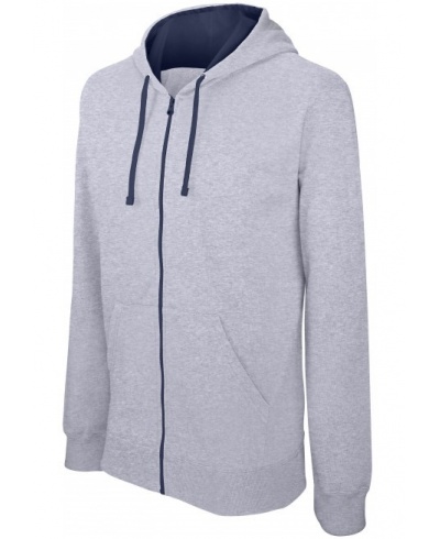 80% combed cotton / 20% polyester. Brushed fleece. Earphone port in kangaroo pocket and neck. Ribbed cuffs and hem. Lined, contrasting hood with drawstring. Contrast YKK® zip.