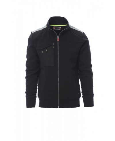 Men’s sweatshirt with full, plastic SBS zip with “autolock” metal pull, two zipped pockets, a multi-function breast pocket with concealed badge holder and LOCK SYSTEM concealed closing flap, reflective stripes on the shoulders, stretch rib cuffs and hem, double stitched seams on the collar, sleeves and hem, and reinforced neck tape. Water repellent fabric treatment