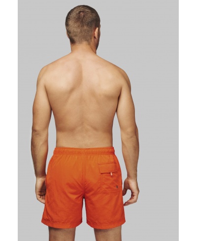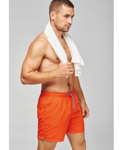 Outer: 100 % polyamide 105 g/m². Integrated mesh knit underwear 100 % polyester 65 g/m². Poly Cotton waist lining 80 g/m². Light and quick-drying fabric. Trendy style. 2 side pockets and 1 back pocket with eyelet, flap and tear release fastening. Fancy inner elasticated waist with drawstring.