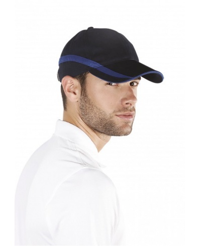 100 % Brushed Heavy Cotton Twill. Contrast bands on panels and peak. Contrast sandwich peak. Size adjuster with matt silver colour metal buckle and grommet.