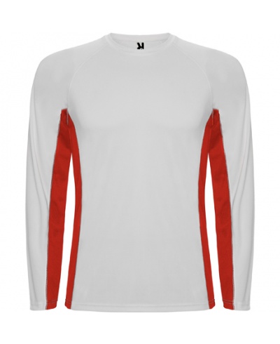 Technical t-shirt combined with two polyester fabrics, short sleeve raglan style. Honeycomb main fabric, and side panels and inner sleeve in microperforated fabric. Crew neck with reinforced covered seams. Comfortable fabric t-shirt and easily fitting to the body.