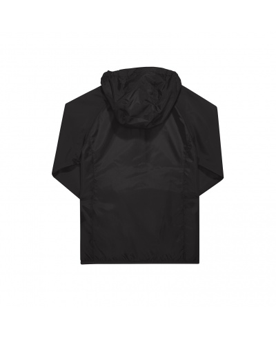 Engineered for boys&girls (gender-neutral), from kid to teen; water resistant; safety compliant elasticated hood; raglan sleeves; 2 front pockets; packable in pocket with zipper and wearable on waist with elastic band and buckle closing; semi-elasticated cuffs; elasticated binding at hem for perfect fit.