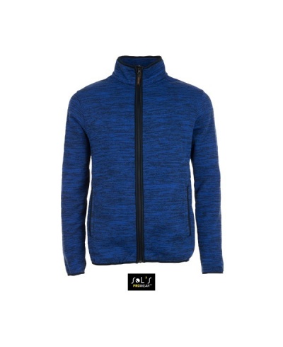 QUALITY: 100% polyester, Brushed inside; Zip jacket, mouliné effect, 2 pockets, Round neck, Contrast elasticated binding at cuffs and bottom