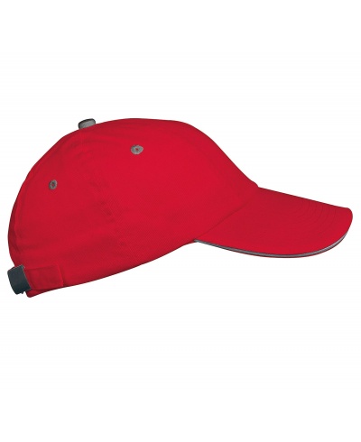 100 % Cotton Twill. Contrast sandwich peak. Size adjuster with metal buckle.