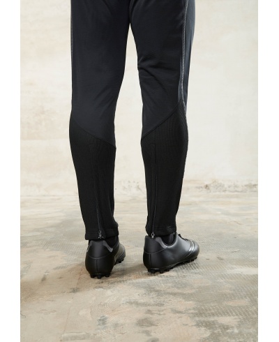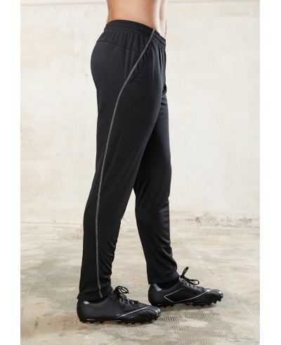 100% polyester brushed polytricot. 1 side pocket. Elasticated waistband with drawcord. Zipped lower leg ends with anti slip strip. Fitted yokes on calves. Contrast coverstiching.