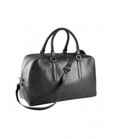 Travel bag in PU imitation leather with 2 handles and detachable shoulder strap. Inner zip pocket and metal zip closure.