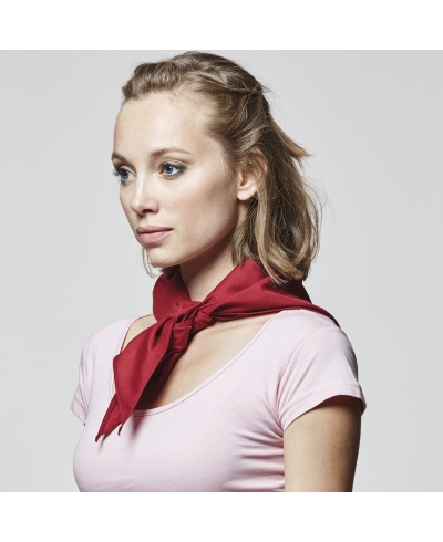 Triangular scarf worn as an accessory for man or woman´s clothing.