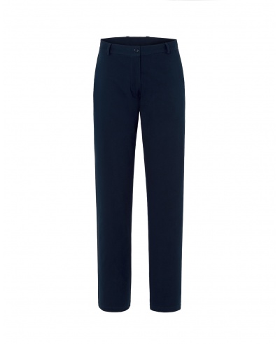 Waistband closure with a button, six belt loops and zipper matching ground colour.