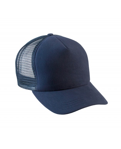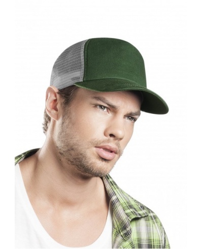 100% heavy brushed cotton front panel and peak, 100% polyester mesh. 5 panels. Adjustable plastic closure.