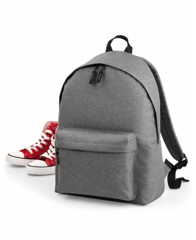 TearAway label for ease of rebranding, two-tone fabric, zippered front pocket, padded back panel, padded adjustable shoulder straps, grab handle