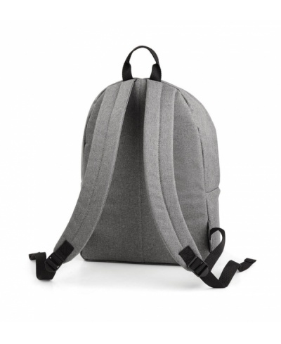 TearAway label for ease of rebranding, two-tone fabric, zippered front pocket, padded back panel, padded adjustable shoulder straps, grab handle