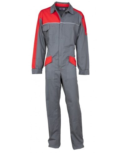 Two-tone overalls, front closing with zip, elasticated cuffs and button cuff fastening, two front LOCK SYSTEM pockets reinforced at the bottom, one roomy multi-function breast pocket, smartphone pocket and foldaway badge holder, two back pockets, one with flap and one with two reflective stripes, reflex piping on the chest and back, back elastic and pleat for greater ease of movement