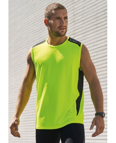 92 % polyester / 8 % elastane 160 gsm. Textured mesh yoke 94 % polyester / 6 % elastane 180 gsm. Quick-drying fabric. Lightweight soft fabric designed for multi sports activities. Textured mesh side and shoulder panels for greater freedom of movement.