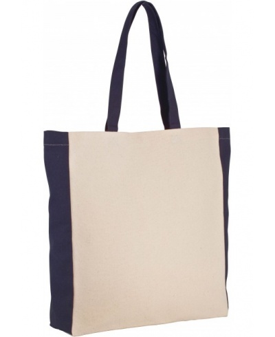 Cotton canvas tote bag 310 gsm, with contrasting gusset and handles. Capacity: 15 L.