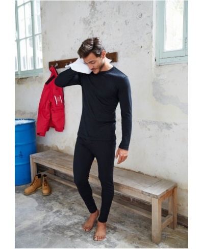 80% polyester / 20% viscose. Warm underwear. Crew neck. Twin needle finishing.