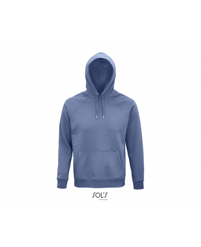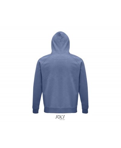 Material: FLEECE 280 - 80% organically grown cotton - 20% recycled polyester, 3 yarns, brushed lining, outside: 100% organic cotton; Cut and sewn, Raglan sleeves, 2x2 ribbed cuffs and hem, half moon inside collar, neck tape, drawstring with metal eyelets and stoppers, Jersey lined hood
