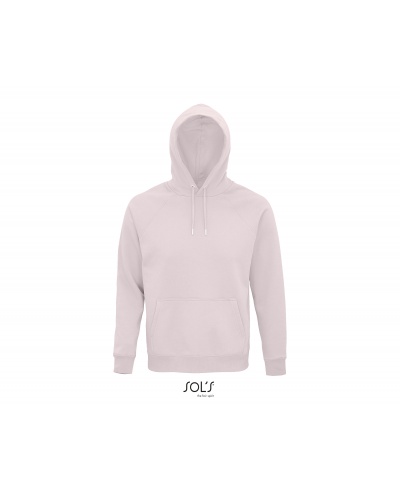 Material: FLEECE 280 - 80% organically grown cotton - 20% recycled polyester, 3 yarns, brushed lining, outside: 100% organic cotton; Cut and sewn, Raglan sleeves, 2x2 ribbed cuffs and hem, half moon inside collar, neck tape, drawstring with metal eyelets and stoppers, Jersey lined hood