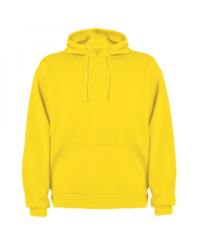 Hooded sweatshirt with kangaroo style pocket and adjustable drawcord. Elastane 1x1 rib in cuffs and waistband. Children size without drawcord.