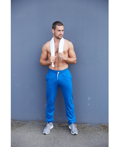 100% cotton. Supple and lightweight fabric. Elasticated waist with inner drawstring + interchangeable outer grey drawcord (colour drawcord sold separately under reference PA068). 2 side pockets and 1 back pocket. Elasticated bottoms.