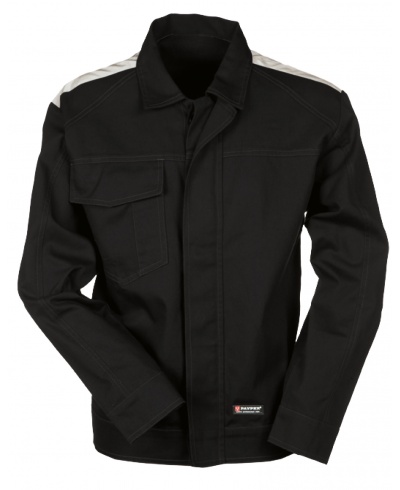 Unisex lightweight all-season jacket, front fastening with plastic buttons and flap, button cuffs, adjustable waist with Velcro. Contrasting stitching, smartphone pocket, detachable badge holder and pen holder in the breast pocket with flap and Velcro. Reflective inserts on the shoulders and back, jeans-style fitted model