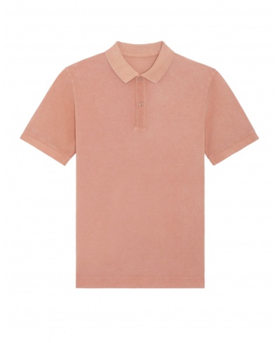 Set-in sleeve, flat knit rib on collar and sleeve hem, inside heavy single jersey back neck tape, front placket with 2 buttons in matching body colour, slit at side seams with heavy single jersey facing, single needle topstitch at shoulder seams, bottom hem with narrow double needle topstitch, garment dyed product, each garment may vary in appearance, colour may bleed, follow our care label, read carefully print recommendations