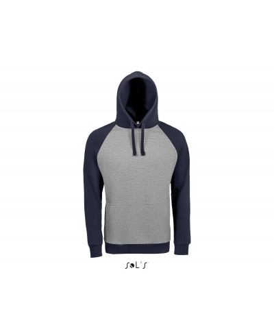 QUALITY: MOLTON 280 TECHNOLOGIE LSF (Low Shrinkage Fabric), 80% ringspun cotton, 20% polyester, brushed inside, Outside: 100% cotton; Two-coloured, Raglan sleeves, Front pouch pocket, Ribbed cuffs and bottom, Lined hood with drawstring to adjust it, taped neck; Certificate: STANDARD 100 by OEKO-TEX®