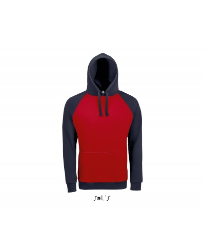 QUALITY: MOLTON 280 TECHNOLOGIE LSF (Low Shrinkage Fabric), 80% ringspun cotton, 20% polyester, brushed inside, Outside: 100% cotton; Two-coloured, Raglan sleeves, Front pouch pocket, Ribbed cuffs and bottom, Lined hood with drawstring to adjust it, taped neck; Certificate: STANDARD 100 by OEKO-TEX®