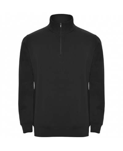 Sweatshirt with half zip in neck in same tone. Inner collar in same tone. Reinforced covered seams in collar. 1x1 ribbed cuffs and waist.