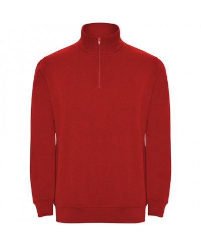 Sweatshirt with half zip in neck in same tone. Inner collar in same tone. Reinforced covered seams in collar. 1x1 ribbed cuffs and waist.