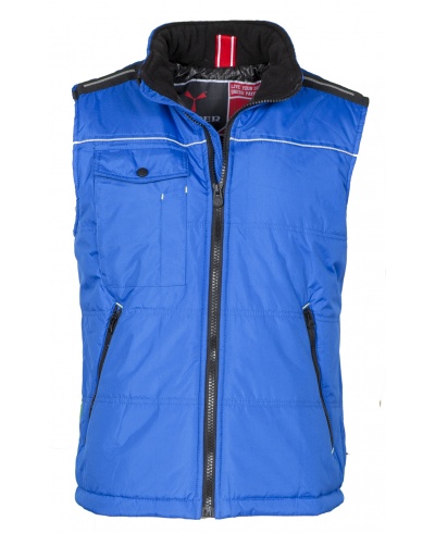 Unisex vest with zip, contoured back, two roomy outer pockets with zip, roomy breast pocket for smartphone, badge holder ring, reflex piping on the chest and shoulders; padded, high-density lining, fleece inside collar, one inner pocket