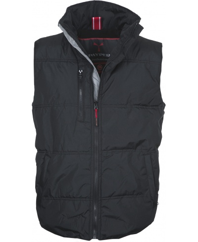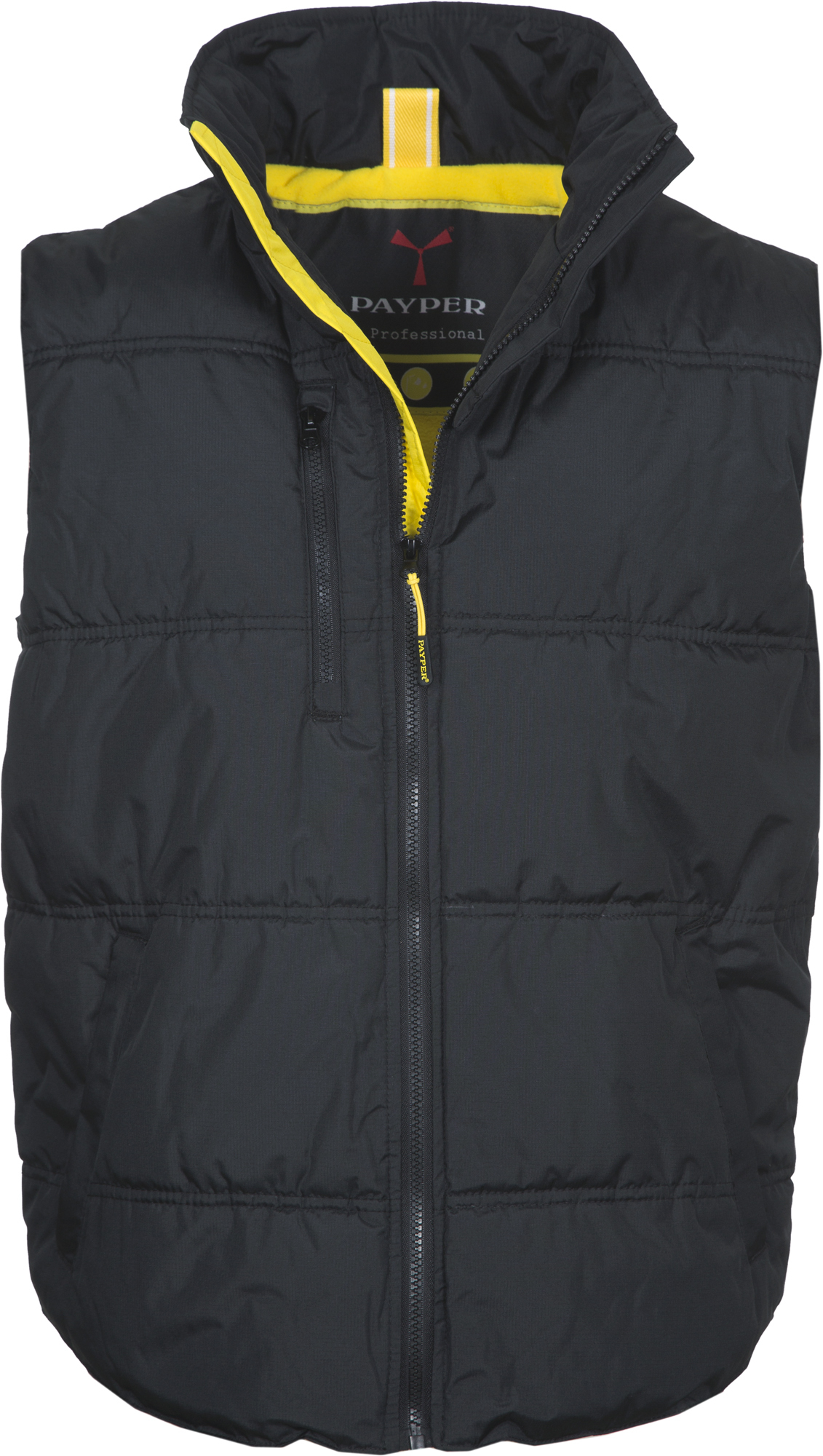 Unisex vest, 8 mm plastic zip with metal pull, two side pockets with zip, breast pocket. Padded, contrasting micro-fleece lining