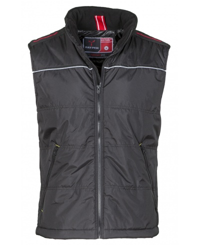 Unisex vest, 5 mm plastic zip with metal pull, contoured back, two roomy outer pockets with zip, reflex piping on the chest and back. Padded, high-density lining, inner fleece collar, one inner pocket