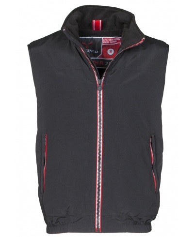 Unisex vest, contrasting 8 mm zip, elasticated hem, two outer pockets with concealed zip. Padded, micro-fleece lining on the inside collar and back, one inner zip pocket for headphones and smartphone headphones, zip on the chest and at the bottom for easier printing and embroidery