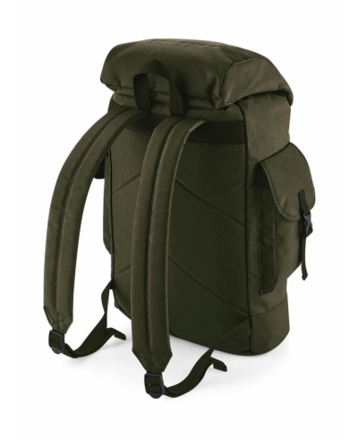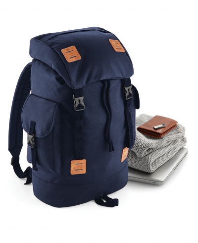TearAway label for ease of rebranding, heritage styling, PU accents, drawcord closure, zippered flap pocket, side pouch pockets, Internal slip pocket, padded back panel, padded adjustable shoulder straps, grab handle
