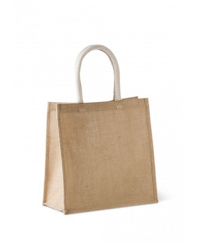 Jute canvas tote shopping bag with cotton handles. Large size.