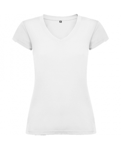 V-neck woman short sleeve t-shirt, ribbed 1x1. Slim fit with side seams.